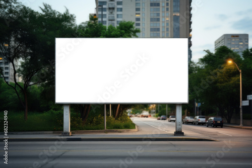 A blank street billboard in a suburban setting, available for local advertising ideas. Generative Ai.