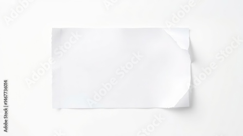 A Blank, Torn, White Sheet of Paper on a White Background, Ideal for Note-Taking or Message Display