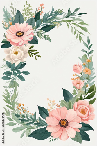 A blank wedding invitation adorned with a watercolor floral frame