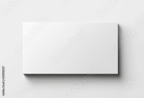 A blank white rectangular card is displayed on a clean white surface with a subtle