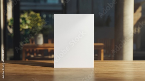 A blank white sheet on a wooden table in a well-lit indoor setting.