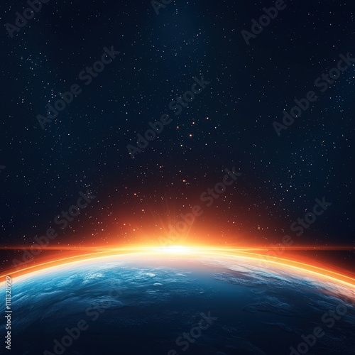 A blue and orange planet with a bright sun in the center