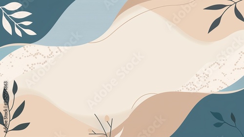 A blue and white background with a leafy green border