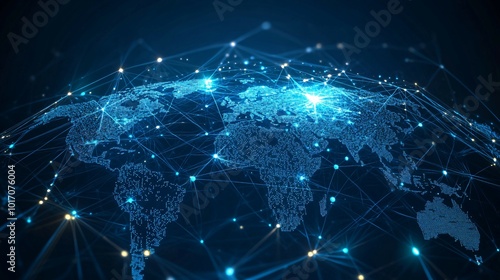 A Blue and White Digital Network Illustration of the World