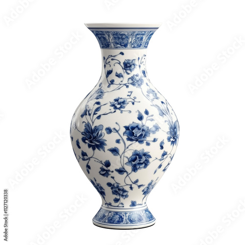 a blue and white porcelain vase 3d render icon isolated on transparent background cutout