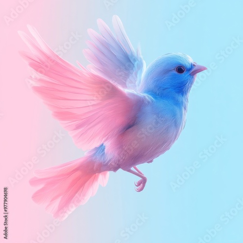 a blue bird with pink wings flying in the sky