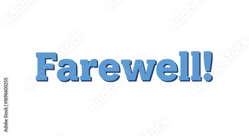 A blue, cheerful "Farewell!" message against a stark white backdrop conveys a sense of warm departure or fond adieu with simple typography