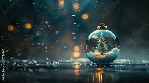 A blue Christmas ornament with snow