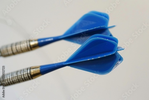 a blue darts on a white surface