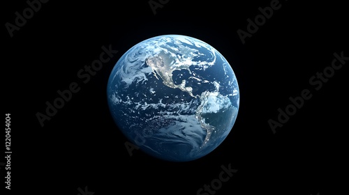 A blue Earth with lights on it centered, Realistic 3d planet earth