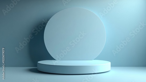 A Blue Oval Shape and a Round Platform in a Blue Room