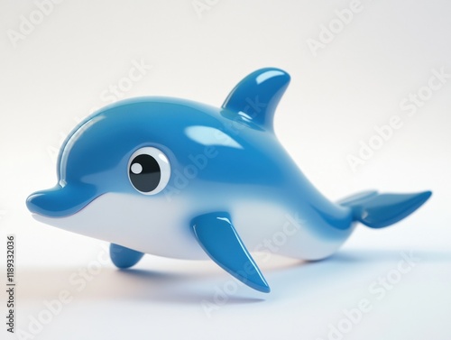 a blue plastic cartoon dolphin toy on a white background