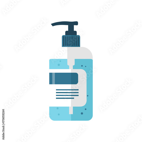 A blue pump bottle of liquid soap stands prominently, showcasing its sleek design and label