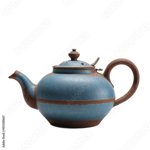 A blue teapot sitting on top of a white table.isolated on transparent or white background