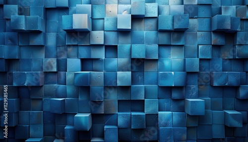 A blue wall made of blue cubes