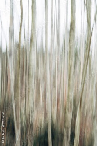 A blurry image of trees with a mood of calmness and serenity