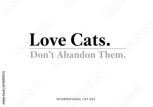 A bold and impactful typography design with the message "Love Cats. Don't Abandon Them" advocating for animal rescue on a clean white background