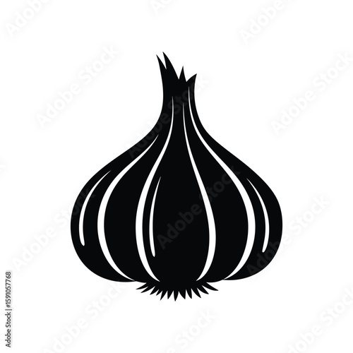 A bold black garlic graphic, perfect for culinary projects and illustrating the essence of flavor, isolated on white background