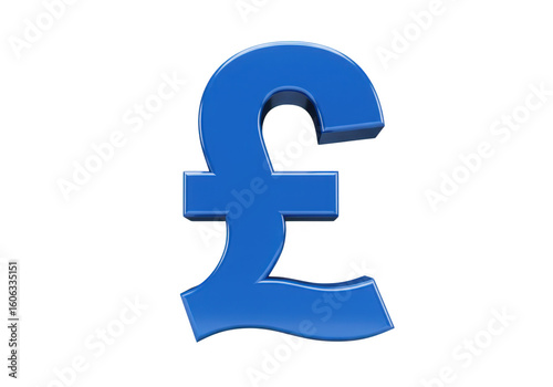A bold blue 3d pound sterling symbol isolated on a transparent background representing british currency and finance