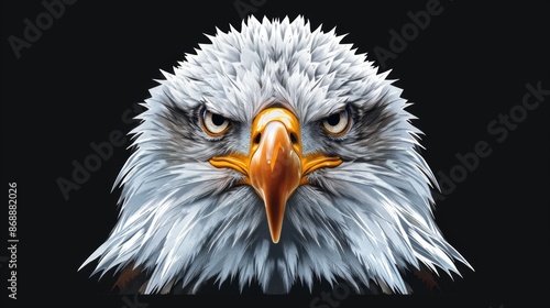 A bold digital art representation of an eagle head, featuring striking details and a fierce expression, symbolizing power, determination, and strength.