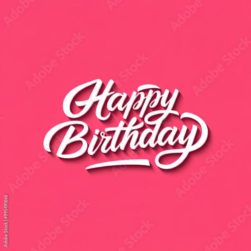 A bold "Happy Birthday" text in white, with a stylish script font on a bright pink background, ideal for greeting cards or banners