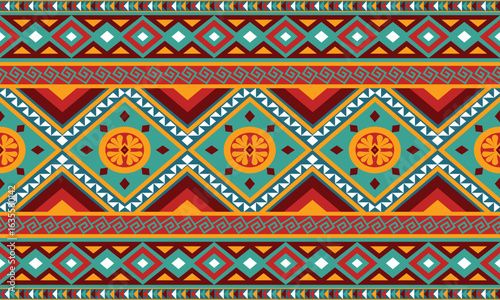 A bold modern tribal geometric pattern with symmetrical shapes and vibrant color contrasts. Perfect for textiles, fashion, and boho-inspired design.