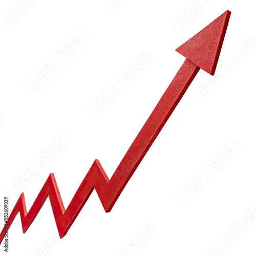 A bold red arrow showcases an upward trend symbolizing growth and progress in various sectors. The minimalist design emphasizes the rising values effectively