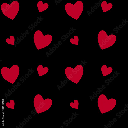 A bold seamless pattern of vibrant red hearts set against a black background. Perfect for romantic designs, textiles, stationery, and Valentine's Day themes.
