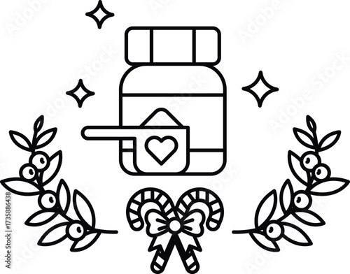 A bottle of medicine with a spoon and a heart on it