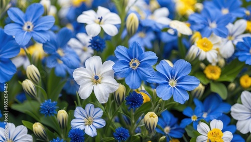 A Bouquet Featuring Blue, White, and Yellow Blooms