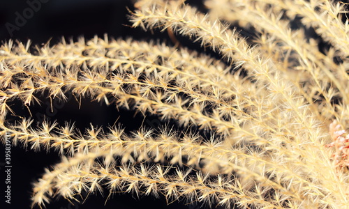 A bouquet of dried flowers of a sunny shade on a dark background close-up selective focus.