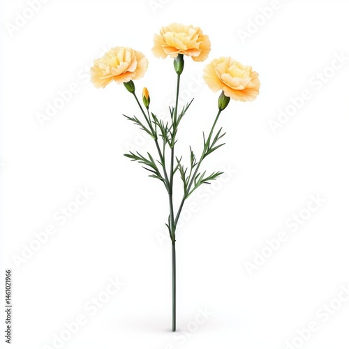 A bouquet of yellow carnations, isolate on white background.
