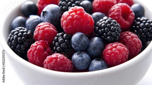 A bowl of fresh mixed berries including blueberries, raspberries, and blackberries