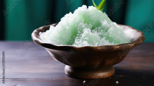 a bowl of green ice cream