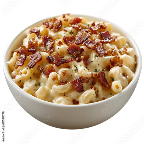 A Bowl of Mac and Cheese Topped with Bacon Bits Isolated on Transparent Background