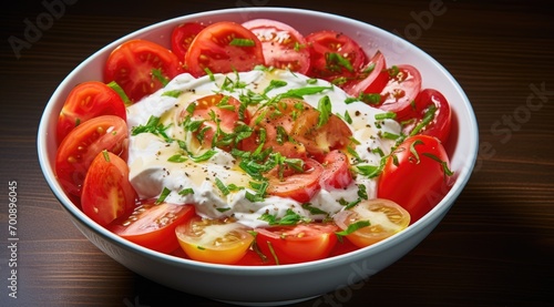 A bowl of plain yogurt and tomatoes