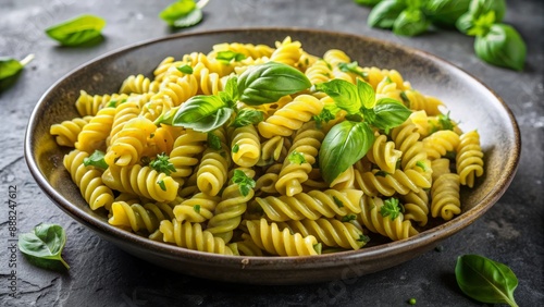 A Bowl of Rotini Pasta with Basil, Close-up, Food Photography, Italian Cuisine, Pasta, Basil, Food
