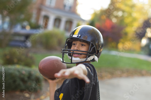 A boy playing football outdoors