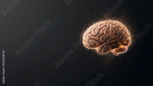 A brain glowing with neon lights, melting into puddles of bright liquid that form abstract patterns