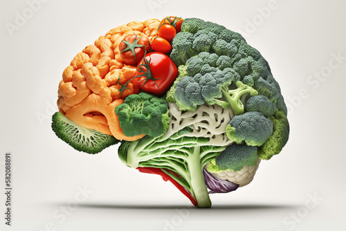 A brain made of Veggies. Vegetables in a shape of a human brain representing love for vegetables and vegan lifestyle. Ai generated