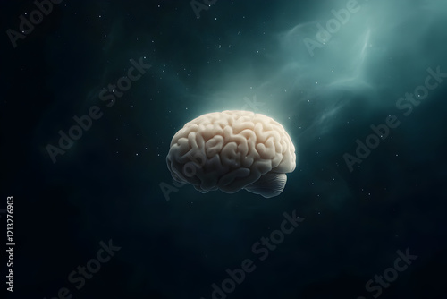 A brain surrounded by swirling stars and soft light, symbolizing mental clarity and the pursuit of inner peace.