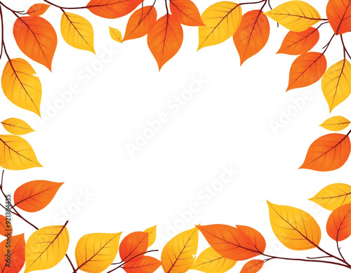 a branch with autumn leaves that has fallen from the tree forming a border leaving a copy space