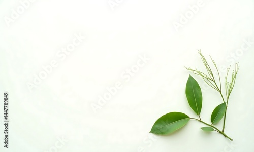 A branch with green leaves and scattered leaves on a light green background in a minimalist style