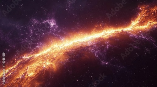 A breathtaking cosmic scene depicting a glowing, fiery galaxy torn by vibrant colors in the expanse of space. Abstract artwork showcasing stellar phenomena.