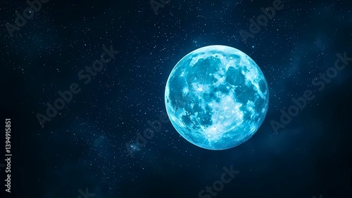 A breathtaking full moon in the night sky, shining with an ethereal glow, against a backdrop of stars. The moon is a brilliant sight, captivating the viewer