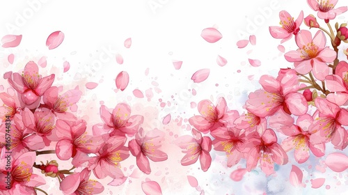 A breathtaking illustration of vibrant pink cherry blossoms on branches, with petals falling gracefully against a light background, showcasing the essence of springtime.