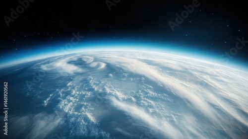 A breathtaking view of Earth from space showcases its serene atmosphere and cloud patterns, inspiring feelings of tranquility and wonder about our planet's beauty.