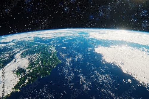 A breathtaking view of Earth from space, showcasing lush green continents, swirling white clouds, and the deep blue of the ocean against a backdrop of stars.