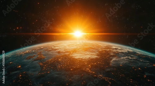 A breathtaking view of Earth with a sunrise illuminating the horizon.