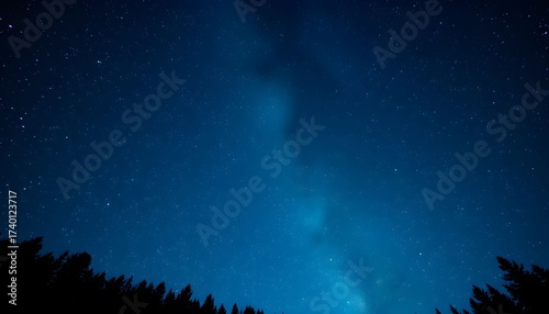 A breathtaking view of the Milky Way galaxy stretching across a clear night sky above a silhouetted forest.